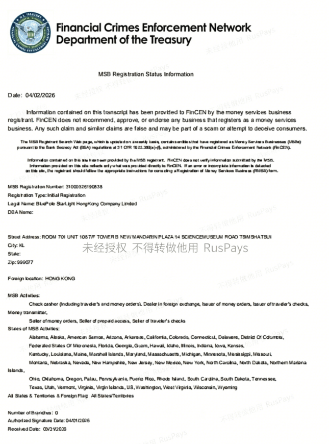 俄付通(Ruspays)由BluePole StarLight HongKong Company Limited成立于2021年,是国内领先的、专注于俄语区市场的专业跨境支付服务商。自成立以来,我们便以 “连接中俄,赋能全球” 为使命,深耕本地支付领域,致力于为雄心勃勃的中国出海企业提供一站式、本地化的收单解决方案。我们深刻理解中国企业在拓展俄语市场时面临的支付壁垒与挑战,凭借对本地市场的深刻洞察和丰富经验,无缝连接 SBP、Sber Pay、YooMoney 、Tinkoff Pay、Bank Card等俄罗斯主流支付方式。